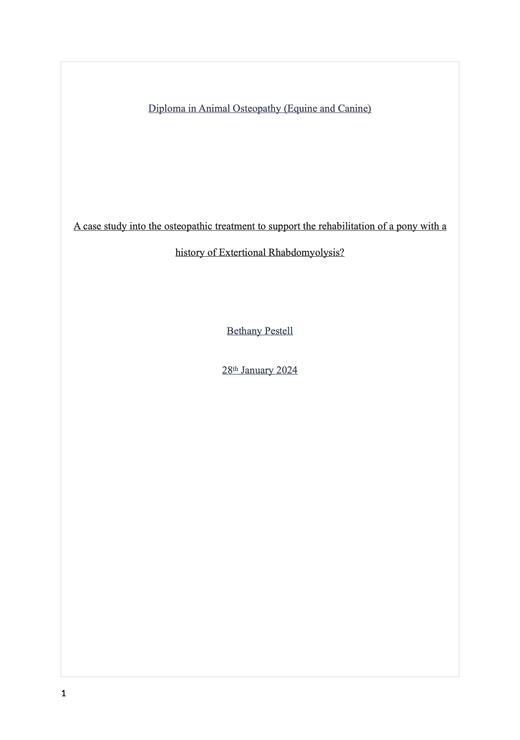 Click on the PDF below to read a detailed case study on osteopathic treatment supporting rehabilitation in an equine with a history of exertional rhabdomyolysis.