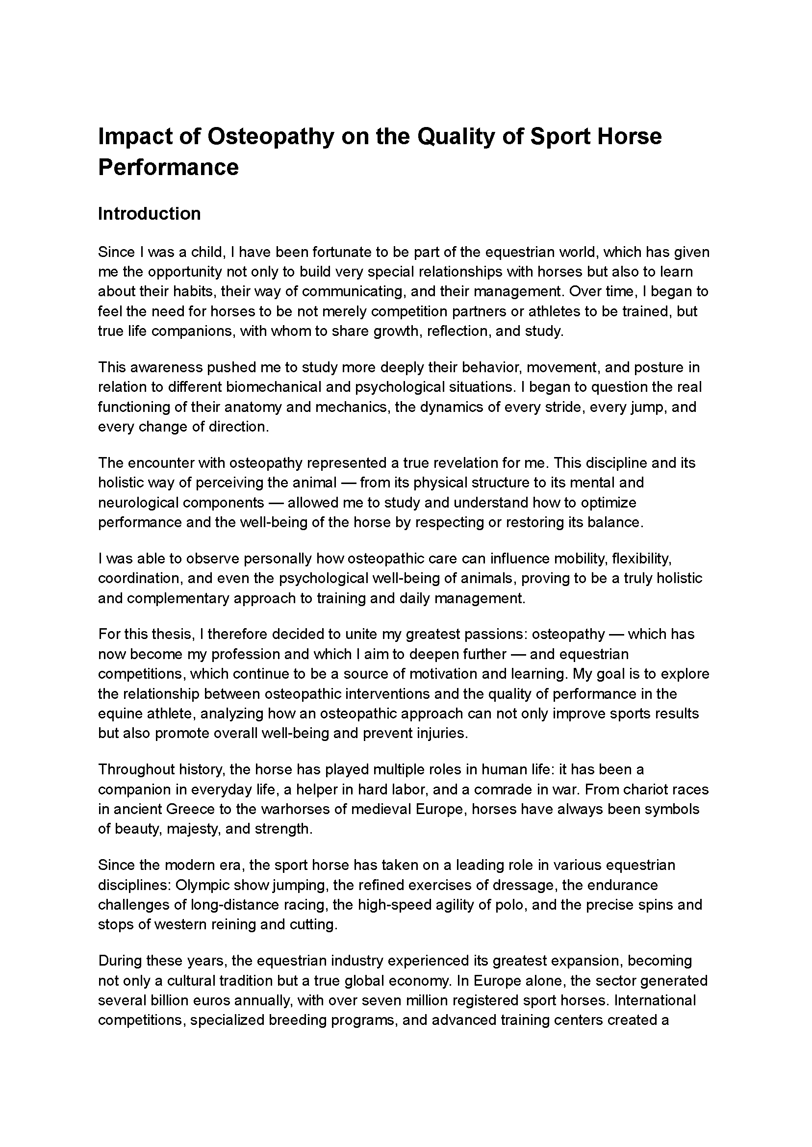 Click on the PDF below to read an exemplary thesis by LCAO student Asia Peruzzetto, exploring how osteopathic interventions influence sport horse performance quality.