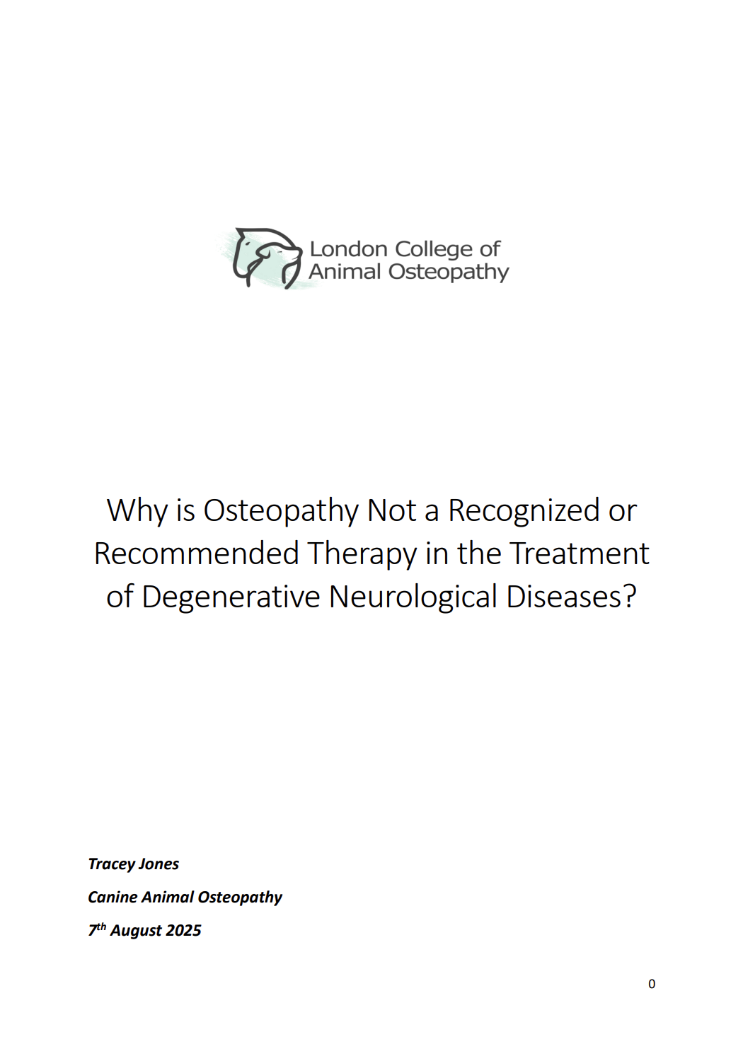 Click on the PDF below to read a comprehensive review of why osteopathy is not recognized in treating degenerative neurological diseases and its potential supportive role in canines.