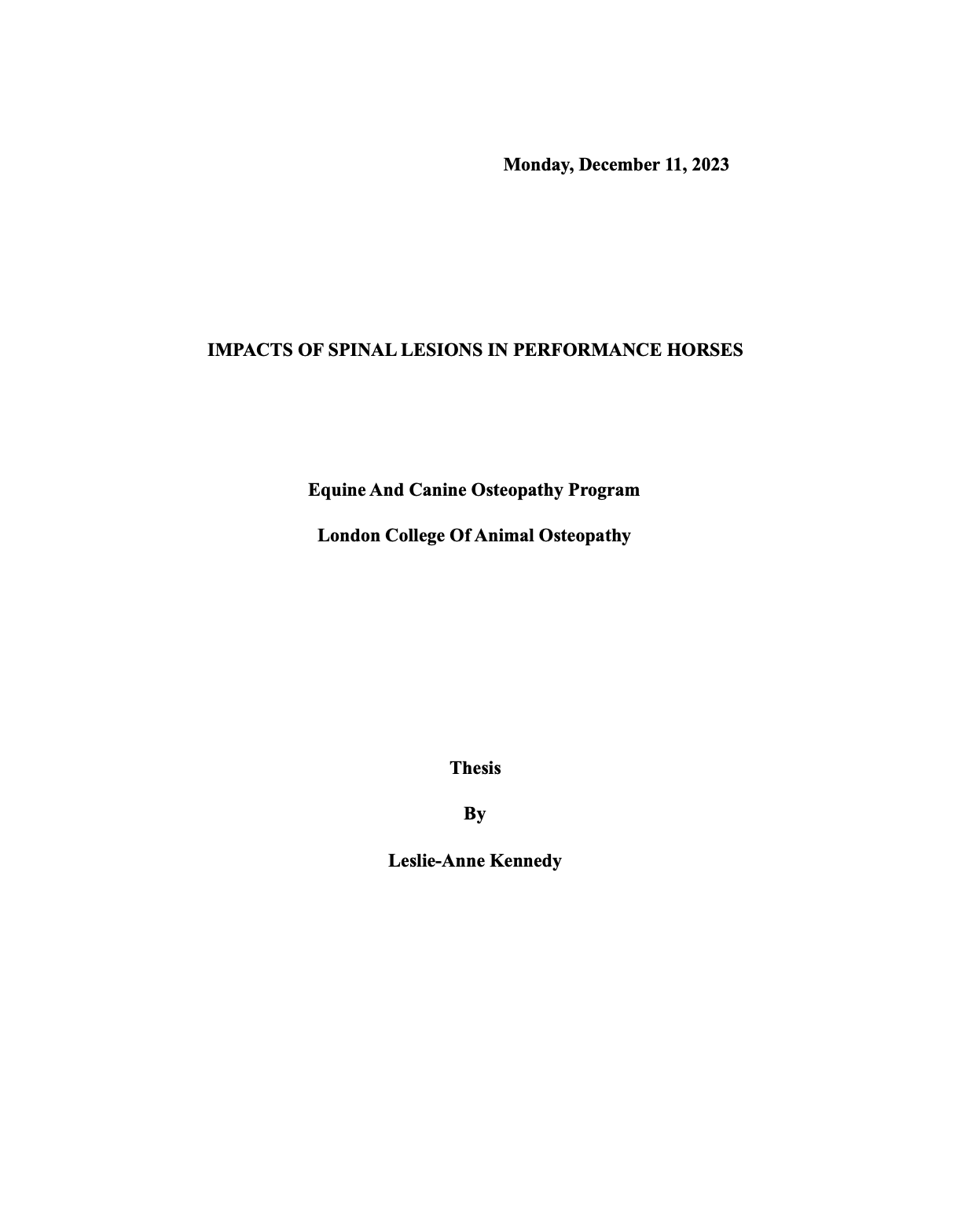 Click on the PDF below to read a thesis by LCAO student examining how osteopathic spinal lesions may impact asymmetry, straightness, and performance in elite horses.