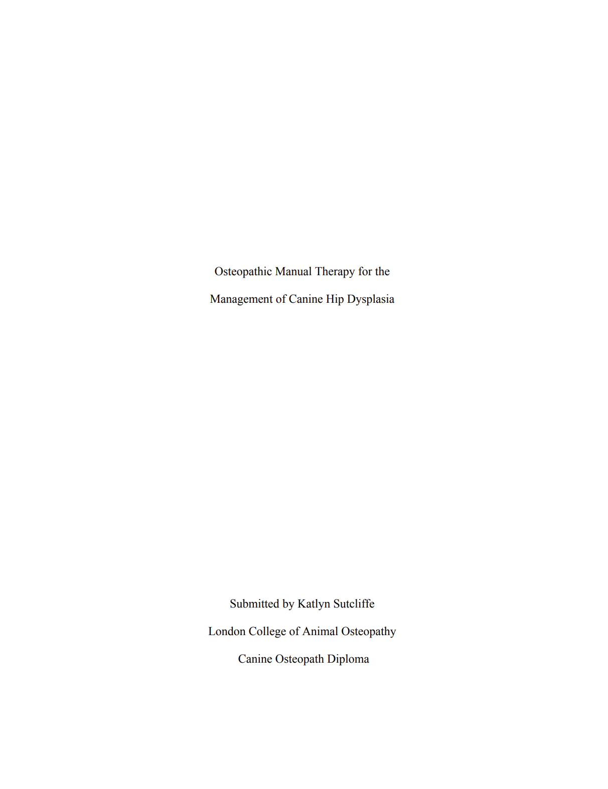 Click on the PDF below to read a thesis by LCAO student Katlyn Sutcliffe on osteopathic manual therapy for managing canine hip dysplasia.