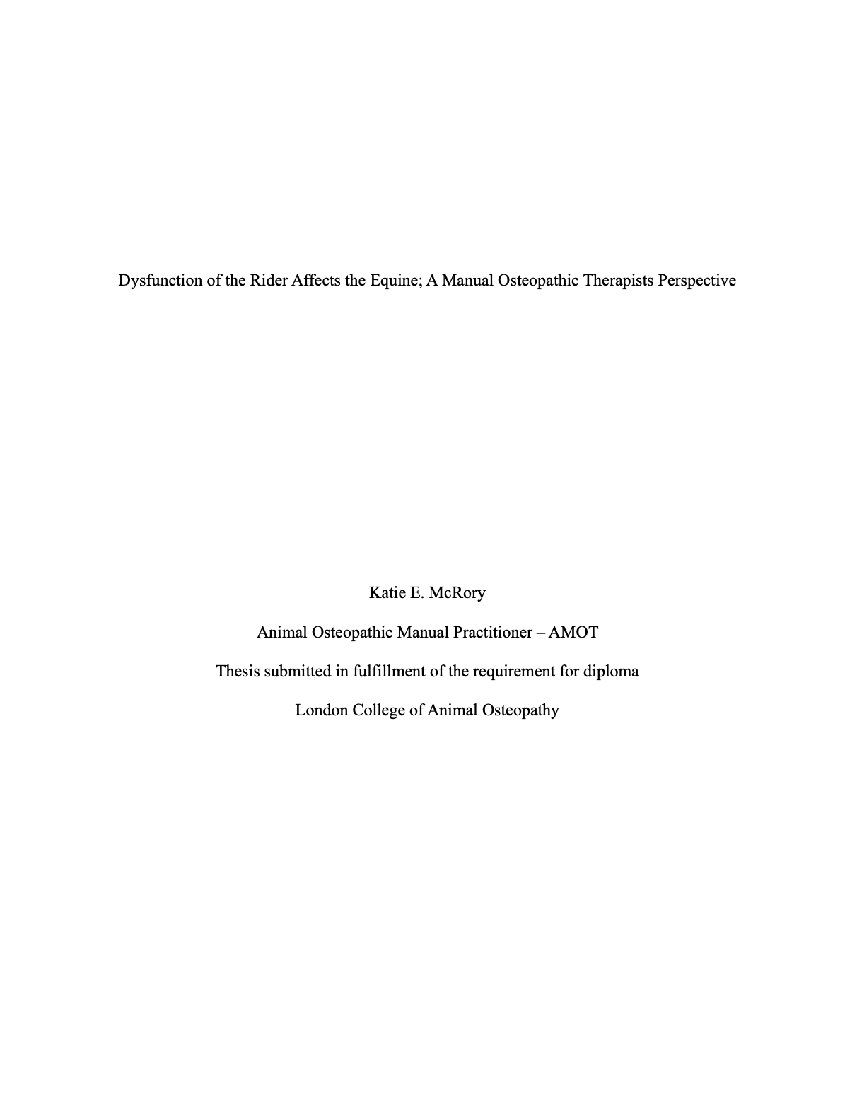 Click on the PDF below to read a thesis by LCAO student Katie McRory on her transition from emergency care to preventative craniosacral therapy for animals.